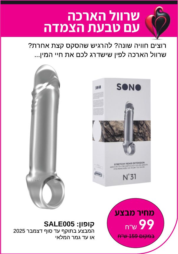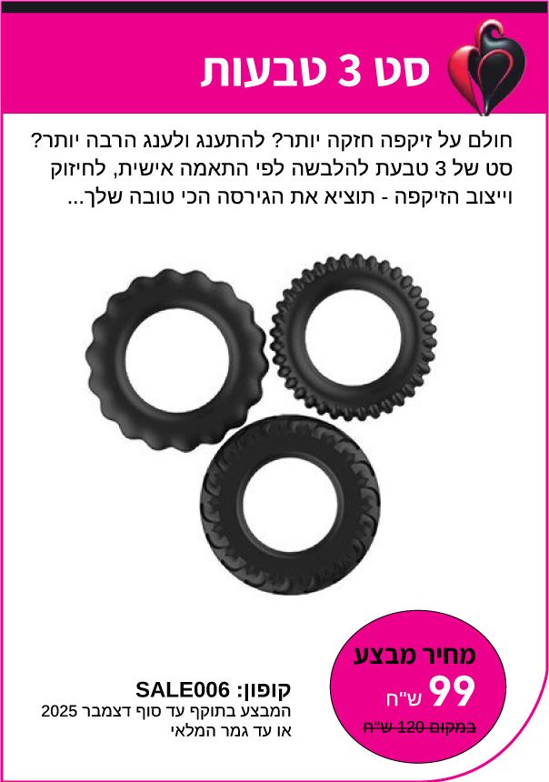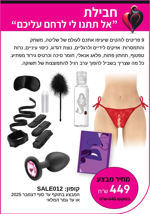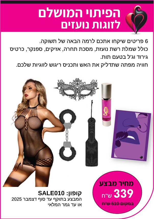 רוצים להוסיף תשוקה וחדשנות לחיים? זה הזמן! כל המבצעים זמינים לתאריך המצויין בהם או עד גמר המלאי.